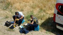 Aşağı Mahallede bulunan boş bir arsada araçlarını park eden seyyar satıcılar, araçtan indirdikleri alet çantalarının içindeki matkap ve el aletlerine sahte etiket yapıştırdı. Dakikalar içinde yaklaşık 20 çantayı satışa hazırlayan iki satıcı, daha sonra sokak aralarında satış yapmak için harekete geçti.