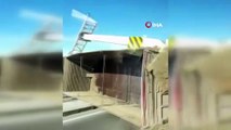 Rusya'da otoyolda seyir halinde olan kamyonun damperinin açılması sonucu üst geçit yıkıldı. Kaza anı yoldaki başka bir aracın kamerası tarafından anbean kayıt altına alındı.