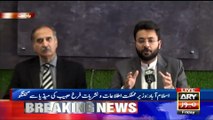 Islamabad: Farrukh Habib and Babar Awan talks to media