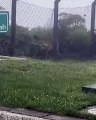 O animal foi acuado pelos cães e subiu nas árvores