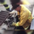 Les pompiers sauvent une famille de canards