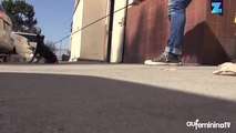 Dès que son maître s'approche pour lui faire un bisou, le chien recule et fait semblant de le mordre, un jeu très marrant entre un chien et son maître.