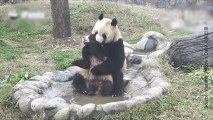 Ce bébé panda n’est pas friand à l’idée de se faire laver par sa maman