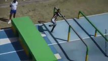 Ce garçon n'arrive pas à tenir debout sur ce parcours du combattant
