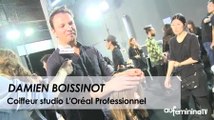 « Andrea Karg souhaitait retranscrire la qualité, la douceur et la texture soyeuse de ses sublimes cachemires, dans les cheveux des mannequins. Seconde inspiration donnée par Andrea : la chanteuse Sade. Résultat, ce look afro super chic, alliant une matière plaquée et shiny en racines, à des longeurs gaufrées à souhait, que j’adore. »