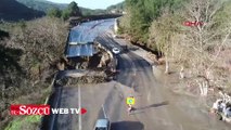 Sağanak nedeniyle çöken yol, kısmi olarak trafiğe açıldı