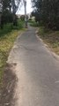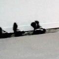: "We were running in a buggy on our property when we just happened to see skunks fixing to cross the road, then the snake popped up and the skunks defended themselves, then just walked off into woods."