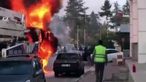 Kadıköy'de beton pompası kamyonu alev alev yandı