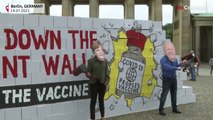 Activists lay down body bags outside the White House ahead of a meeting between US President Joe Biden and Angela Merkel to protest the German chancellor’s opposition to Covid-19 vaccine patent waivers, which proponents say would vastly increase vaccine supplies to fight the pandemic across the worl