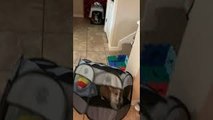 : "I have a 13 week old corgi named Bean who is a huge goof ball. This was her first time sticking her head out of the car window and apparently she thought that she could ‘catch’ the air in her mouth. When she discovered she couldn’t, she gets mad and barks at it!"