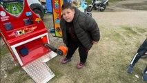 Person Trying to Wade Through Waterlogged Street on Scooter Stumbles and Falls Down