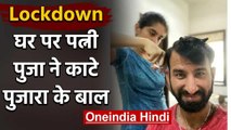Cheteshwar Pujara recently shared a picture of himself getting a hair cut from his wife Puja at his home during to the ongoing lockdown due to the coronavirus crisis.