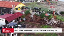 Rami Kuru Gıda Hali'nde verilen tebligat süresinin dolmasının ardından, dükkanlarını zamanında boşaltan esnafın dükkanlarının iç kısımlarının yıkımına başlandı.
