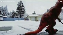 Tyranosaurus Rex skottar snö som ett proffs