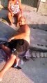 Homem senta em cima de jacaré e espera por bombeiros; vídeo