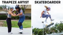 The shoe is on the other foot as we challenge a group of skateboarders to try to keep up with professional trapeze artists. Can AJ help Eunice feel like a 'beautiful banana' on the low swing bar? Will the instructors convince the skaters to land on their backs? What happens when these boarders put all their new skills together? These amazing athletes take on the ultimate test to prove they can adapt to new skills and try to keep up in the high-flying world of trapeze arts.