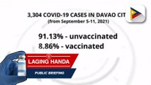 Mayor Sara Duterte, kinumpiramang 91.13% sa kaso ng COVID-19 sa Davao City, hindi pa nababakunahan