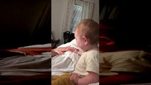 : My husband rarely has to go out of town for work so this was the first time he’d been away from her for more than one night. He got home when she was asleep and I happened to catch her reaction to realizing her daddy was home!