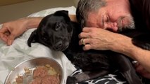 : "I was traveling and saw a truck almost run over a puppy in the middle of the highway. I decided to stop to check on it. I was afraid to take him because there was a police station just ahead, but I decided to take him and we traveled 80 km to our house where he now lives here with us."