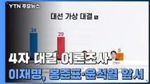 엠브레인퍼블릭, 케이스탯리서치, 코리아리서치, 한국리서치가 지난 18일부터 사흘 동안 진행한 4자 가상대결 조사 결과, 국민의힘 후보가 윤석열 전 총장인 경우 이재명 후보는 35%를 기록하며 1%p 앞섰습니다.