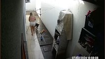 This pregnant woman was playing with her family and dog outside their house. Her husband threw a ball towards their dog, who ran to catch it. The woman thought the dog would run into the street and, she chased to stop them. However, the woman tripped and fell to the ground but was alright.