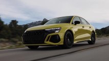The new Audi RS 3 Sedan Python yellow launch on the race track