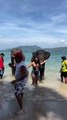 These two friends were dancing together by the poolside. One of them pushed the other into the pool but she made sure the culprit went down with her. Both of them splashed into the water and got soaked.