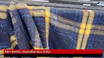 Ağrı buz kesti...Ağaç dalları buz tuttu, araçları brandalı ile örttüler