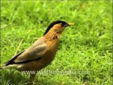 The Brahminy Myna or Brahminy Starling (Sturnia pagodarum) is a member of the starling family of birds. It is creamy orange bird with a black cap and a slight crest. They are usually seen in pairs or small flocks in open habitats on the plains of the Indian Subcontinent.
