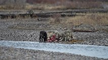 Occurred on November 14, 2021 / Grand Teton National Park, Wyoming, USA: "My wife and I were first on this elk kill Sunday morning, November 14. This group was still eating, and about 6-7 other wolves were around resting and playing."
