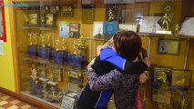 Trainer Cheers Excitedly as Woman Completes her First Marathon