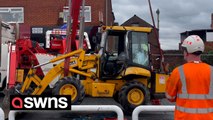 A man was trapped between a fish and chip shop and a reversing lorry in Maidstone.He was filmed clutching his arm after trying to help a lorry make a turn in the road, which then reversed and trapped him against the wall.