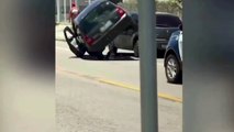 Cão descansa em sombra de carro após acidente no Paraná; veja vídeo
