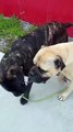 Info from Licensor: Milo is a 6-month-old Neapolitan Mastiff and Missy ( blond) is a 6-year-old Bull Mastiff. It was taken just outside my house when Milo for the first time picked up the lead and wanted to get to the beach quicker than Missy, Missy does muck around a lot and likes to sniff the flowers.