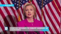 Clinton Declines Invitation to Debate Sanders in California