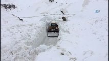 Kar yağışının etkili olduğu Erzurum'da, Karayazı ilçesine ulaşımın sağlandığı yola öğleden sonra çığ düştü.