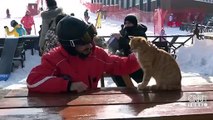 TÜRKİYE'nin önemli kayak merkezlerinden Palandöken'de, tatilcilerin 'Havuç' ismini verdiği sokak kedisi, çalışanların ve vatandaşların neşe kaynağı oldu.