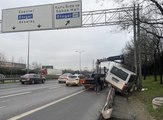 Büyükçekmece'de kamyonla çarpıştıktan sonra yoldan çıkan pikap, yolun kenarındaki bariyerin üzerinde asılı kalırken, kazada 1 kişi yaralandı.
