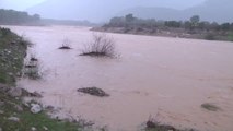 Aşırı yağış ve fırtına nedeniyle 'Kırmızı kod' uyarısının yapıldığı Antalya'nın Kumluca ilçesinde derelerin taşması nedeniyle su altında kalan seralar havadan görüntülendi.