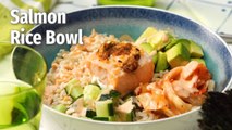 Beautiful honey, lime, and cilantro flavors come together is this tasty salmon rice bowl. Slightly sweet cilantro lime rice topped with juicy salmon roasted in honey, lime, cilantro glaze and fresh cilantro avocado. #salmon #baked #rice #avocado #easydinner