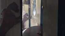 : Angus, a 7-month-old boxer, learned to open the house door to the garage around 5-months-old. In this video, he saw his human daddy come home from work and he wanted to greet him. You can see his fur brother, 5-year-old English Bulldog, Ozzy, follow out the door behind him.