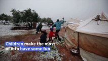 A snow storm hits a camp for the internally displaced and left some with no shelter after losing their tents, in Syria's town of Afrin