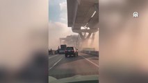 Ankara'da seyir halindeki tırın dorsesinin devrilmesi kamerada