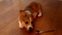 Dieser kleine Hund hat große Angst vor diesem Löffel. Sie werden sich totlachen.