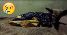 mit Teer übergossener Hund wurde gerettet