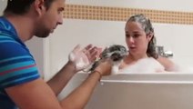 Er lässt sie glauben, dass ihr die Haare ausfallen … Ihre Reaktion ist total lustig!
