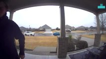 This guy was leaving for his snow clearing job. Ironically, his mom slipped onto a snow-covered stair on their porch and hurt her back. Thankfully, her son was around to help her out after her miserable fall.