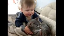 Ce bébé adore les chats! Comme un fou...