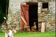 Cute fluffy ducklings adopted by confused chicken