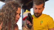 Parents console overwhelmed dog as candle explodes during his birthday celebration